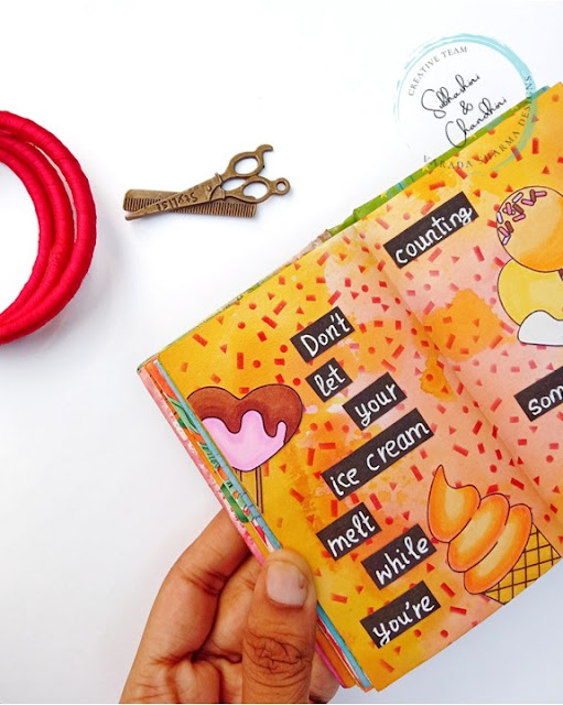 We are back with an art journal page using digital stamps by Varada Sharma. This ice cream stamp set is so cool, wouldn't you agree? Check out other two art journal pages we created this month here and here.